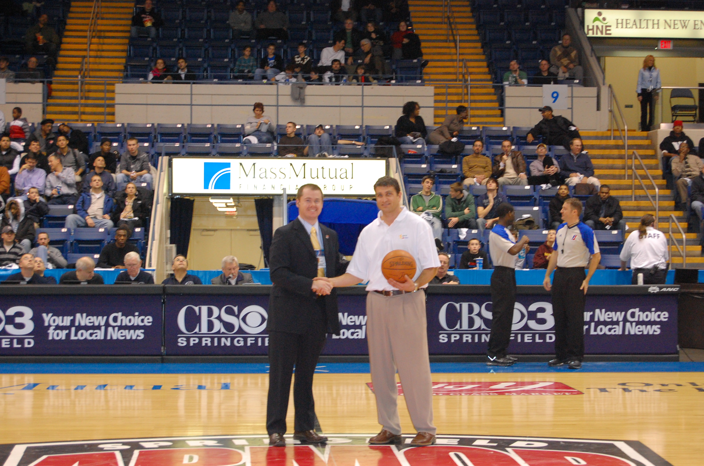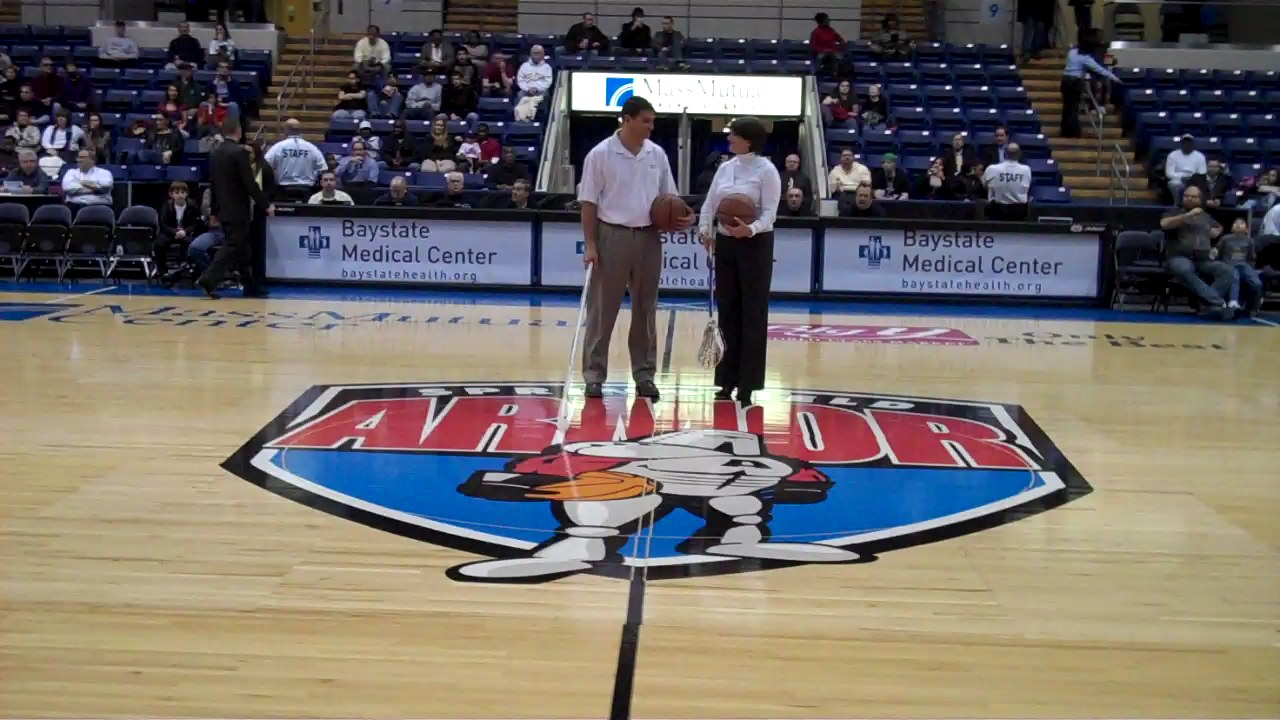 On Thursday night, we handed over equipment we collected (with the Springfield Armor) to the YMCA of Greater Springfield. In this brief bit during a timeout in the second quarter of the Armor game, I made the handoff official along side Andrea Luppi, the Director of Development for the YMCA of Greater Springfield.